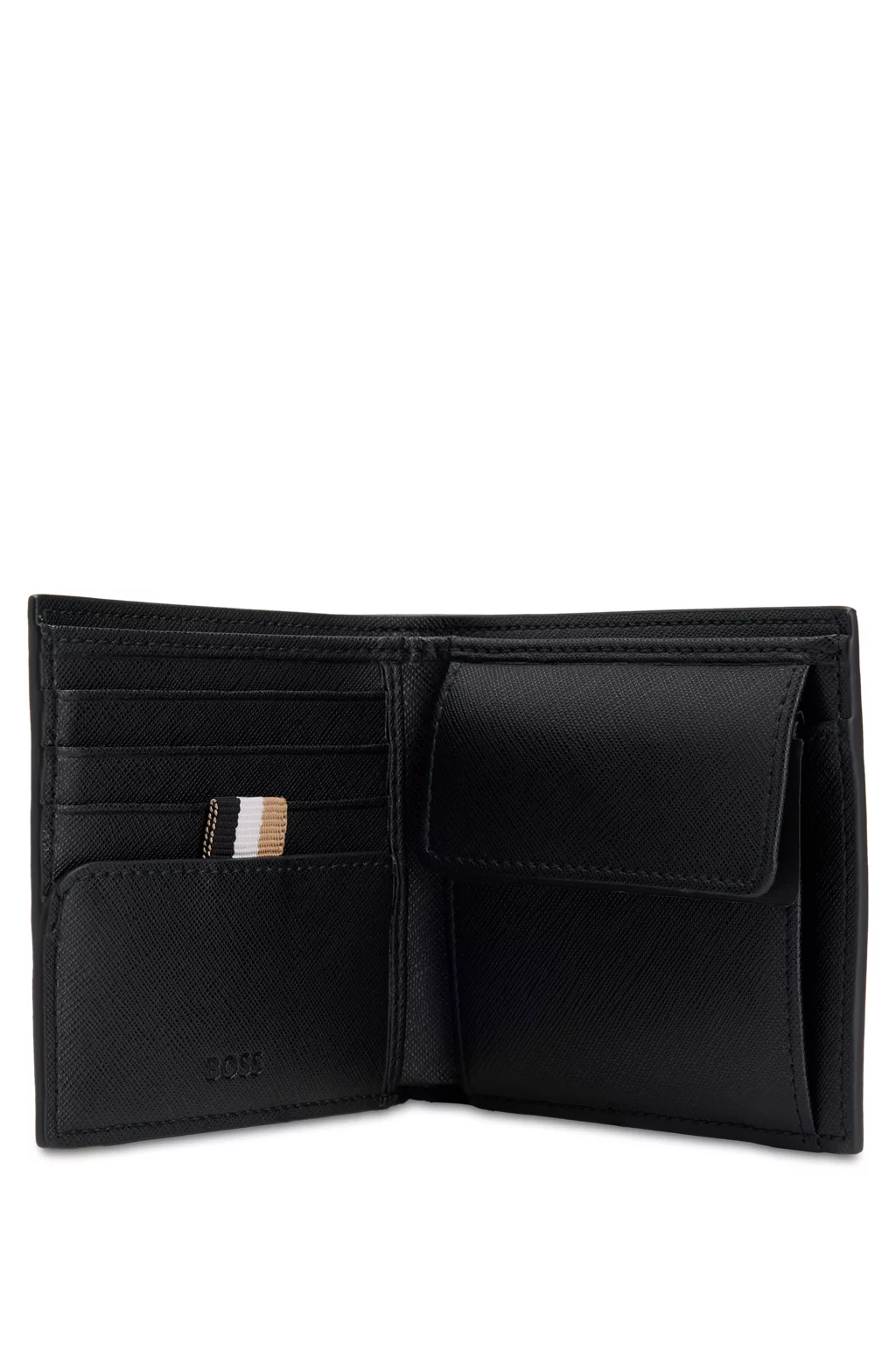 A distinctive wallet by BOSS. Featuring a logo detail, this accessory is crafted in structured material with a coin pocket and signature-stripe trim inside. Measurements: 11 x 9.5 x 2.5cm