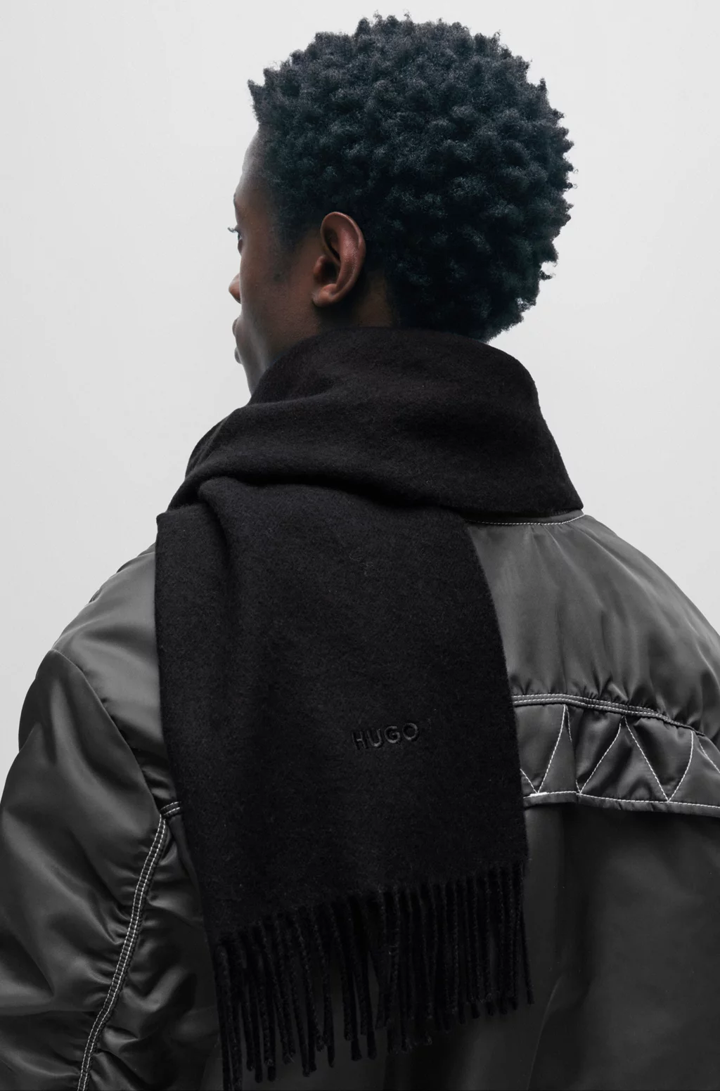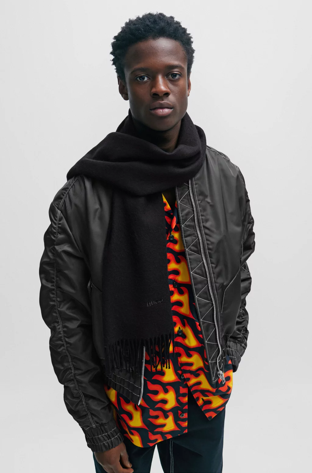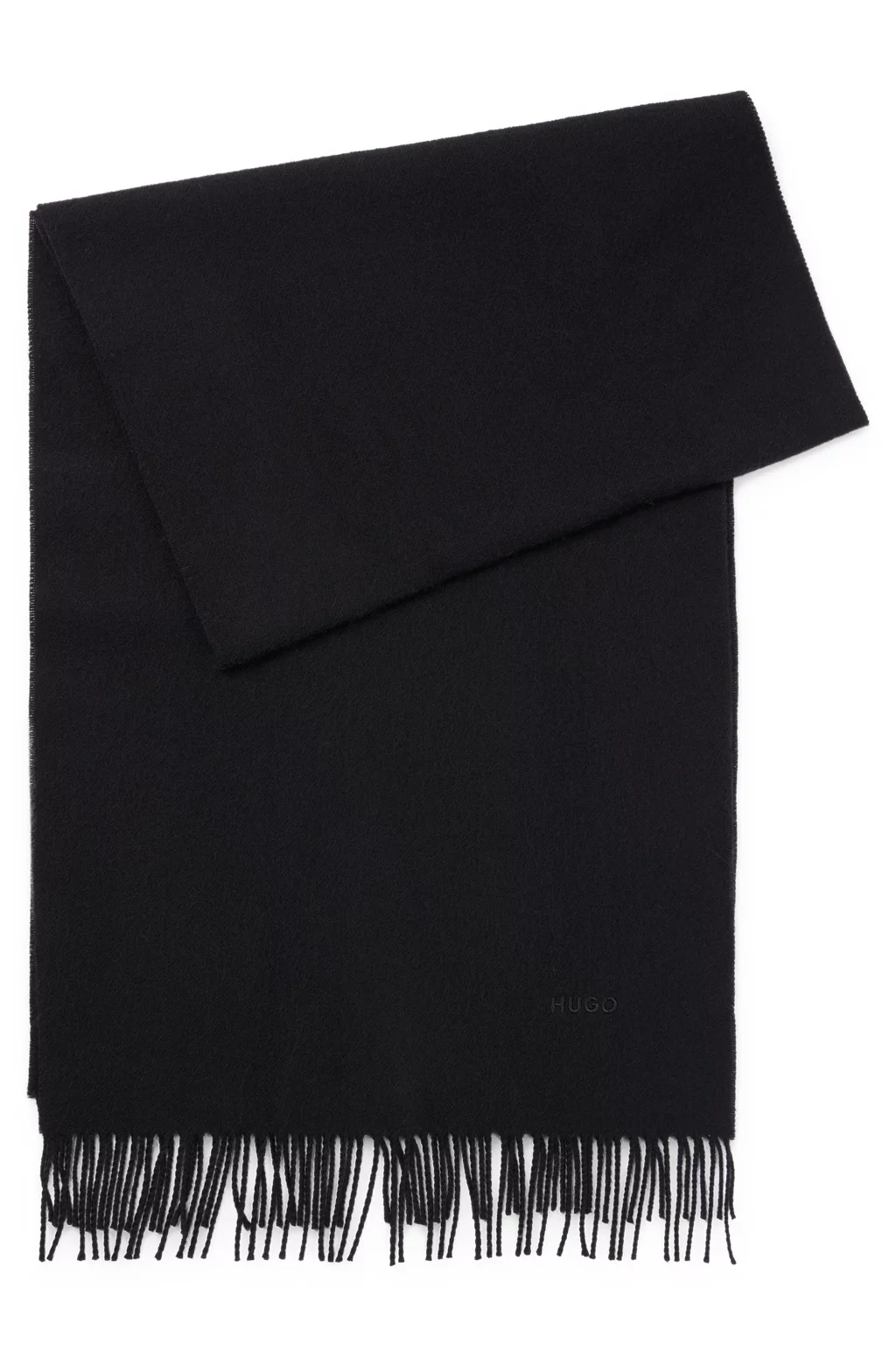 A cosy and minimalist scarf by HUGO in 100% wool with an embroidered logo and fringed ends. Measurements: 180 x 40cm