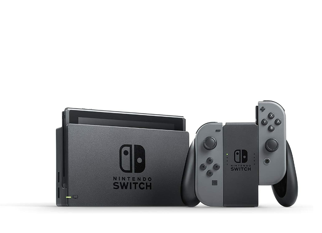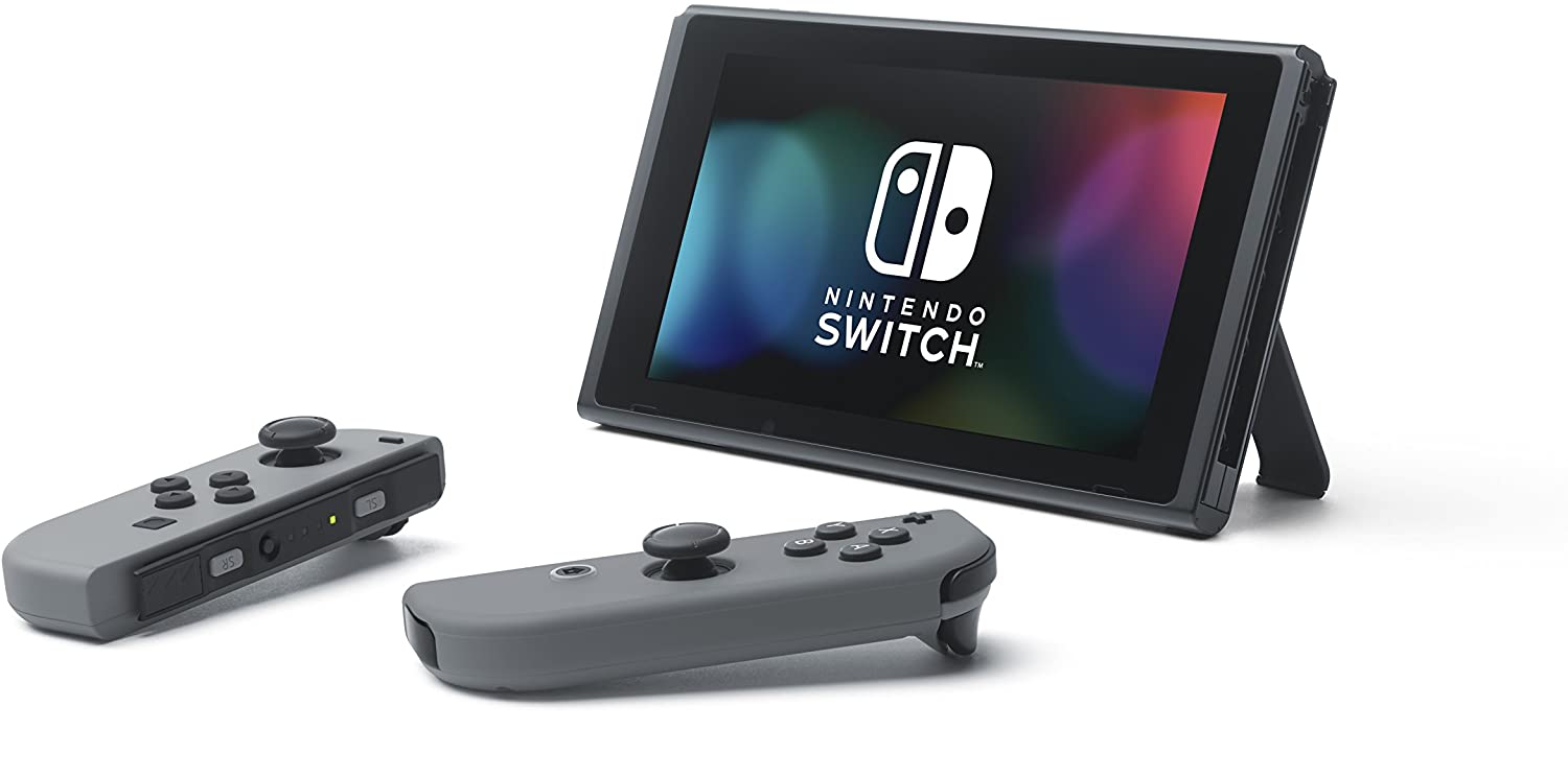 - Nintendo Switch with Gray Joy Con. Get the gaming system that lets you play the games you want, wherever you are, however you like. Includes the Nintendo Switch console and Nintendo Switch dock in black, and left and right Joy Con controllers in a contrasting gray. Also includes all the extras you need to get started. This model includes battery life of approximately 4.5 – 9 hours. The battery life will depend on the games you play